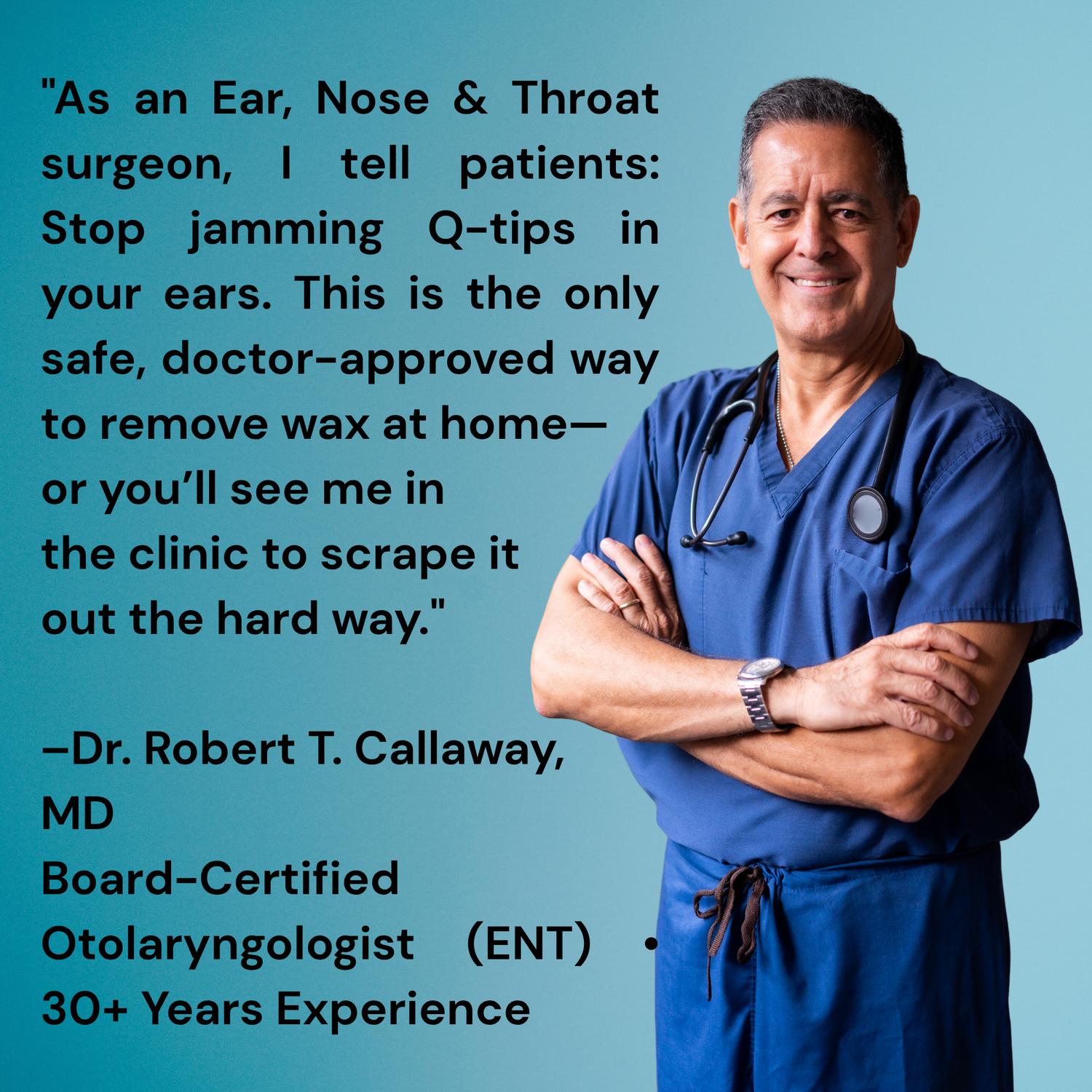 'In my clinic, I repair what Q-tips destroy. This is the only home solution I recommend - because it works exactly how we do it in surgery: safe water pressure, zero contact. Your move.'"