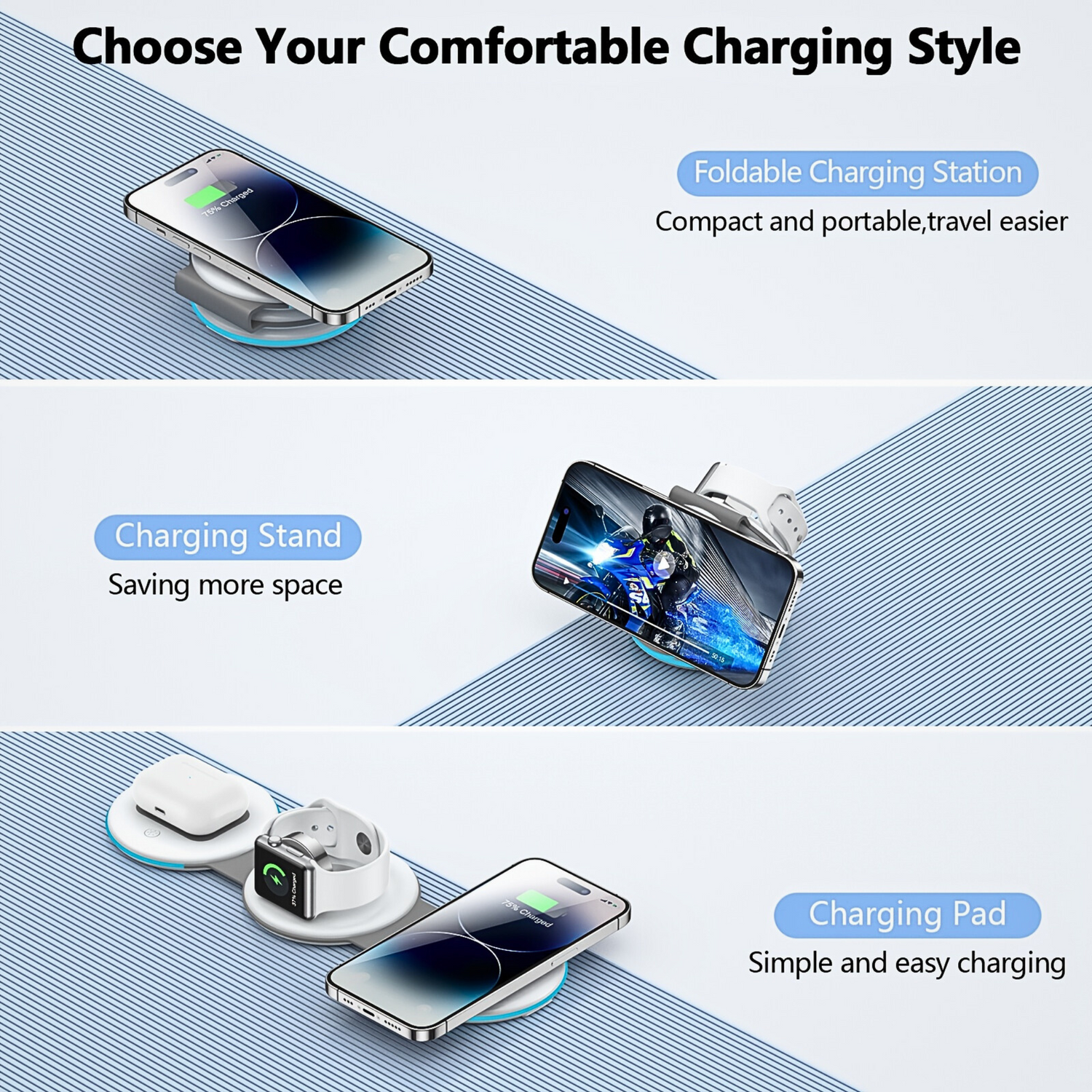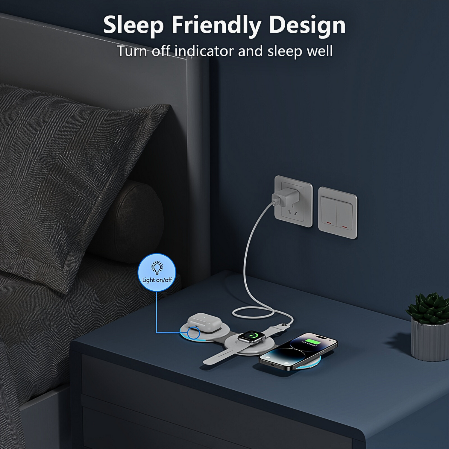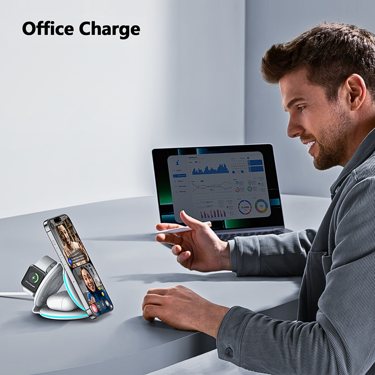 ⚡ VOLT3X – 3-in-1 Magnetic Wireless Charging Hub "Finally—one charger to rule them all. No wires. No clutter. Just snap, charge, and go."
