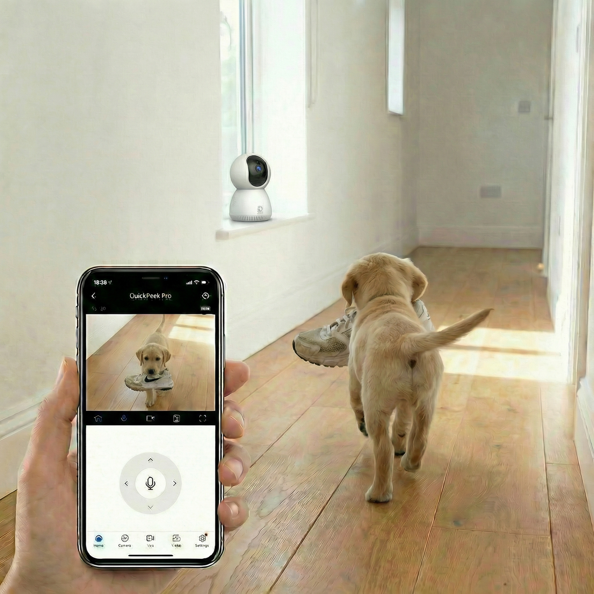 Secure your indoor space with this 1080P camera, featuring dual-band WiFi and instant motion alerts. Its easy USB setup and smartphone app control ensure you never miss a moment.