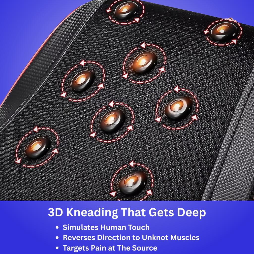3D Deep Tissue Kneading Mimics a therapist's thumbs for real knots. |